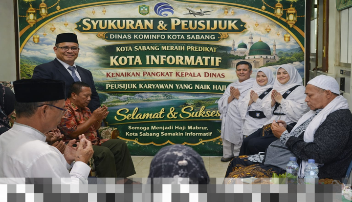 Kota Sabang merayakan momen bersejarah yang dipenuhi rasa syukur dan kebahagiaan. Di tengah suasana hangat di Studio Radio Swara Sabang, Komplek Dinas Kominfo, acara syukuran diadakan untuk merayakan pencapaian Kota Sabang sebagai Kota Informatif. Selain itu, momen ini juga menandai kenaikan pangkat Kepala Dinas Kominfo, Agus Halim, serta prosesi Peusijuk bagi karyawan Dinas Kominfo yang bersiap untuk menunaikan ibadah haji di tahun 2026.